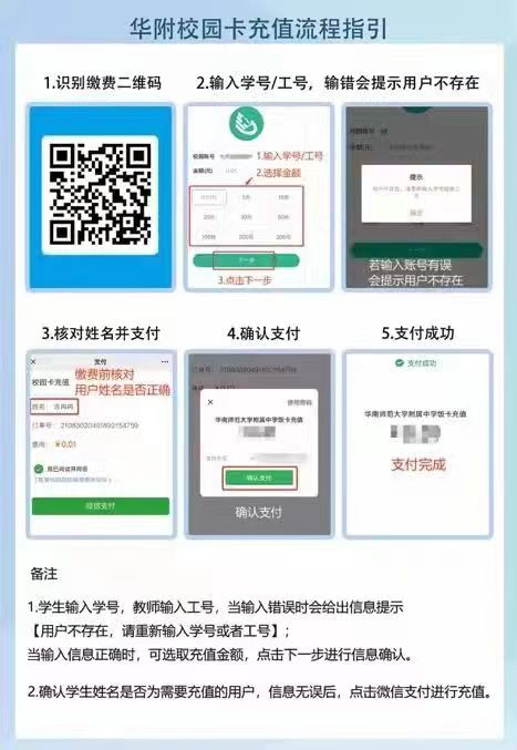 A:饭卡充值是线上的,直接扫这个二维码就可以充钱了,开学老师会指示你们具体怎么操作。华附食堂是可以刷脸的,所以不用担心丢饭卡,有脸就行(没钱了可以借一借同学的豪脸)。