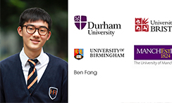 方品(Ben) 华附国际部 IFY 2016届毕业生,在15/16海外大学申请中被英国Durham、Birmingham、Bristol、Manchester等多所名校录取。方同