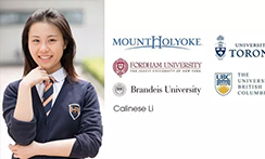 李佩颖(Calinese Li) 华附国际部高三学生在15/16海外大学申请中被诸多美、加名校录取,并获巨额奖学金。 录取院校: 曼荷莲女