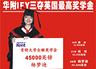 - 杨梦迪同学获得英国肯特大学全球唯一本科全额奖学金4万5千英镑,这是华附IFY毕业生连续第3年获得该奖项,创造了全国同类记录。