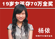 - 杨依同学赢得了英国肯特大学本科全额奖学金,成为国内首个70万人民币英国大学本科全额奖金获得者。