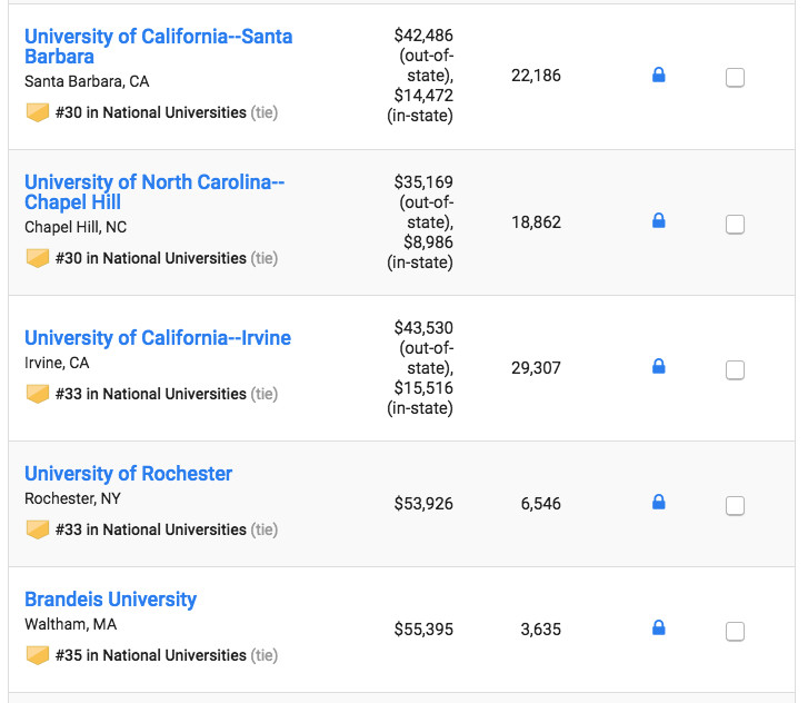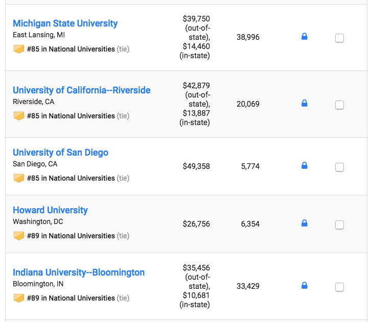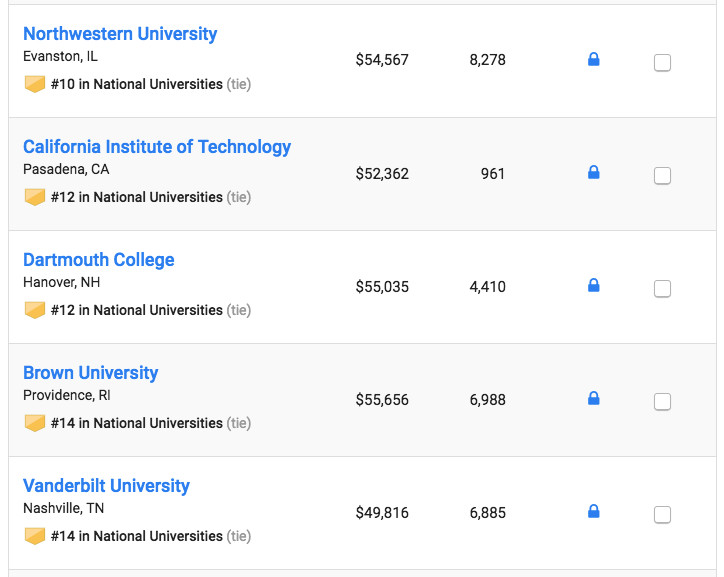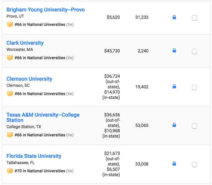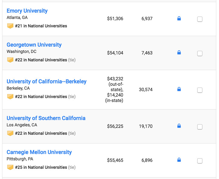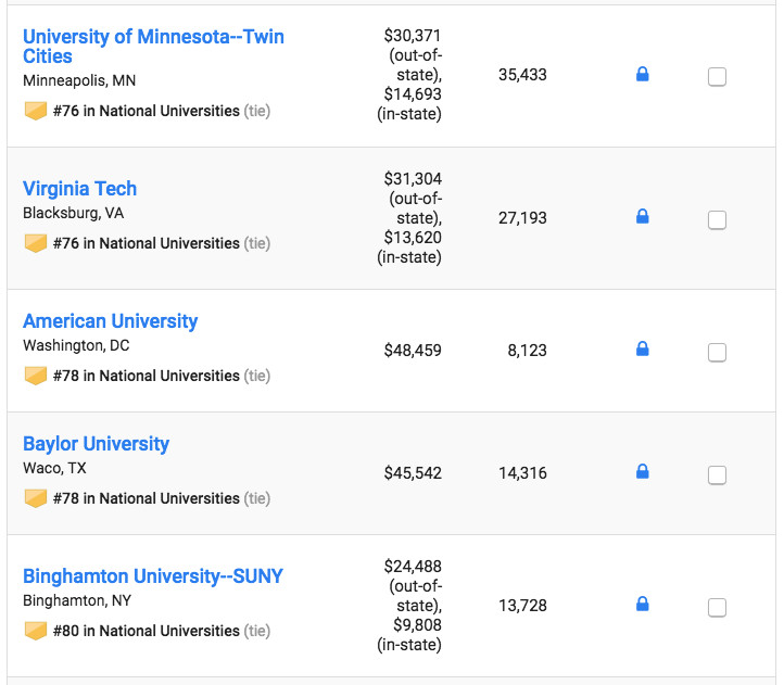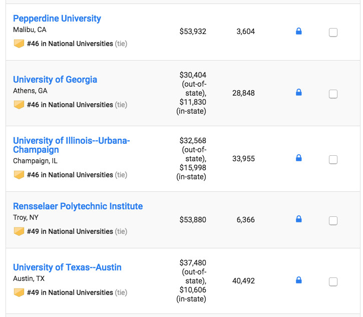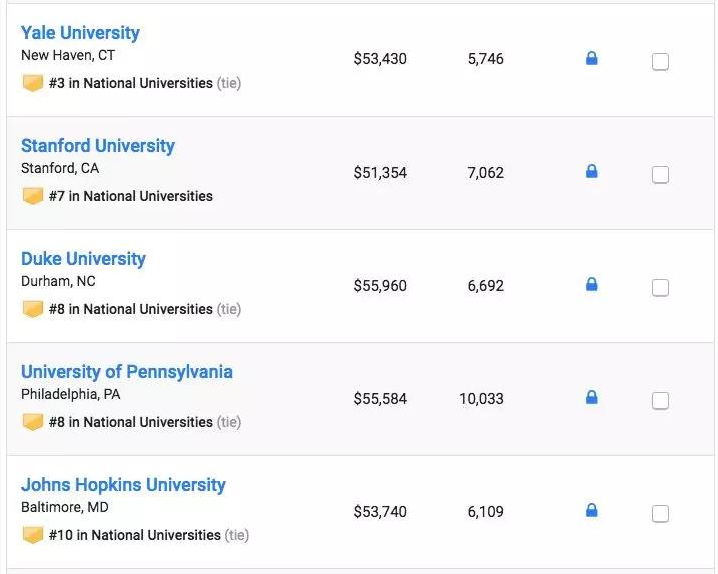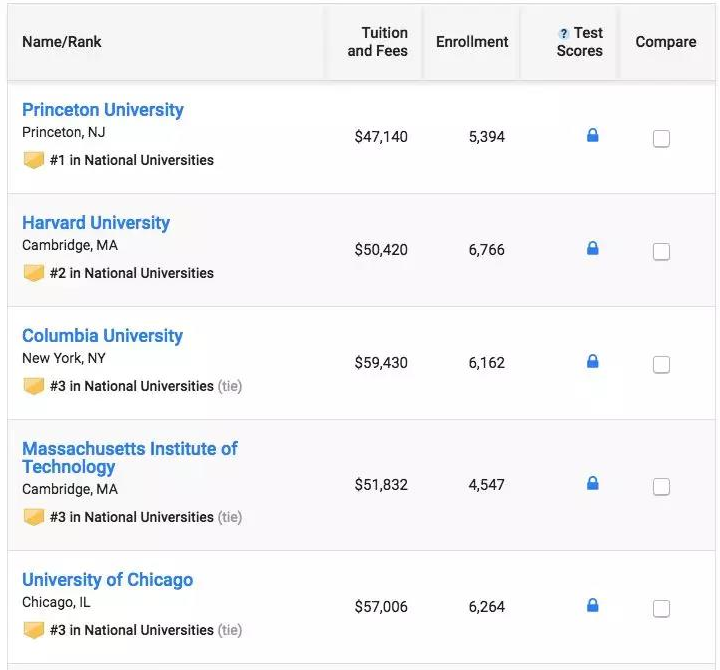 2018USNews全美最佳大学(综合性大学及文理学院)排名