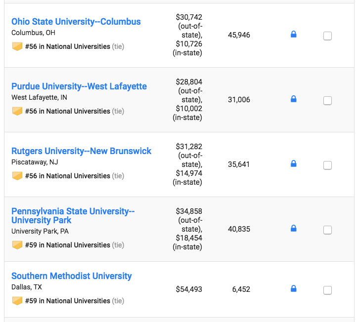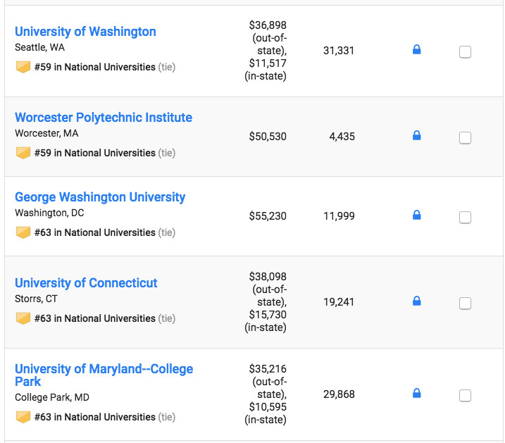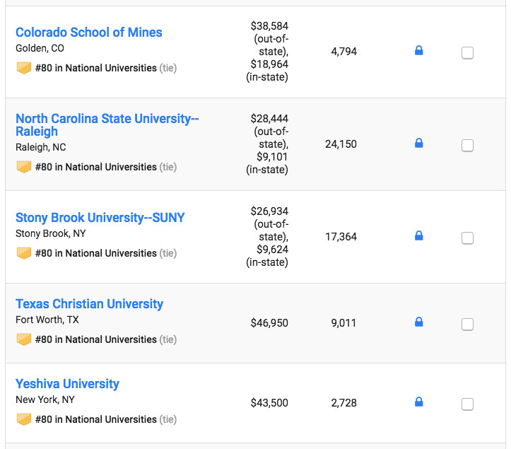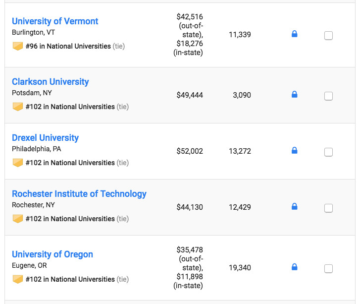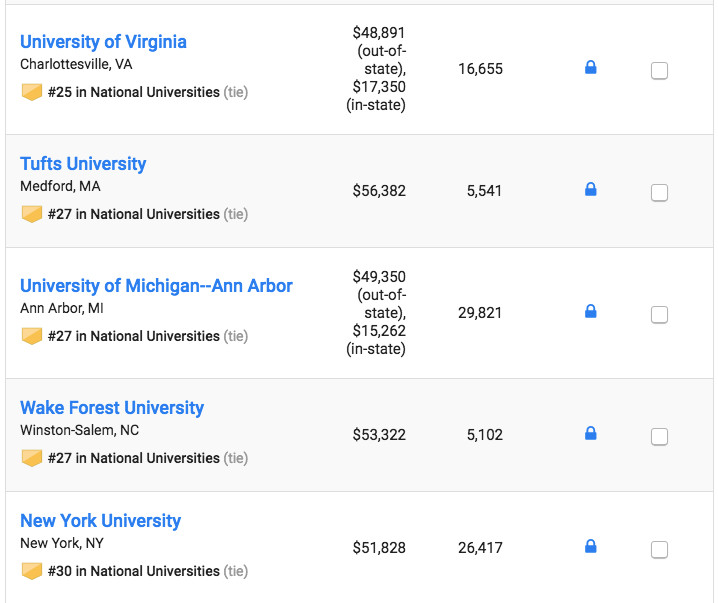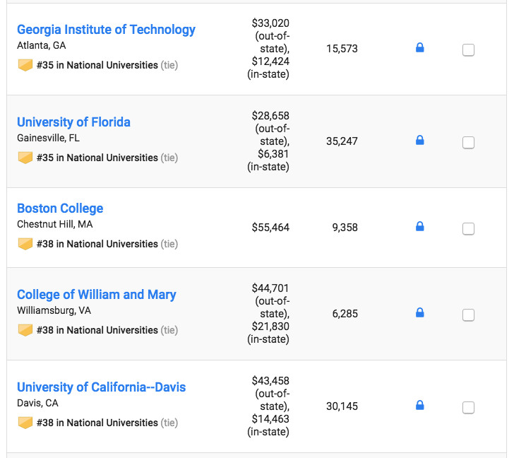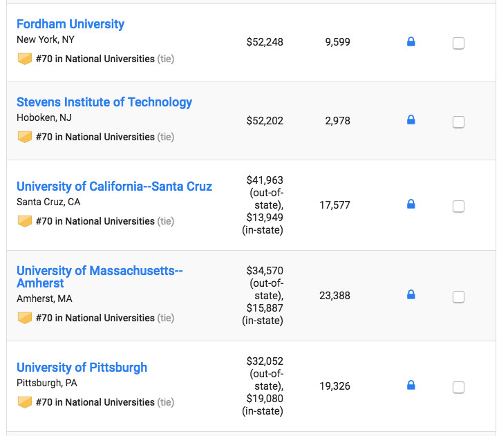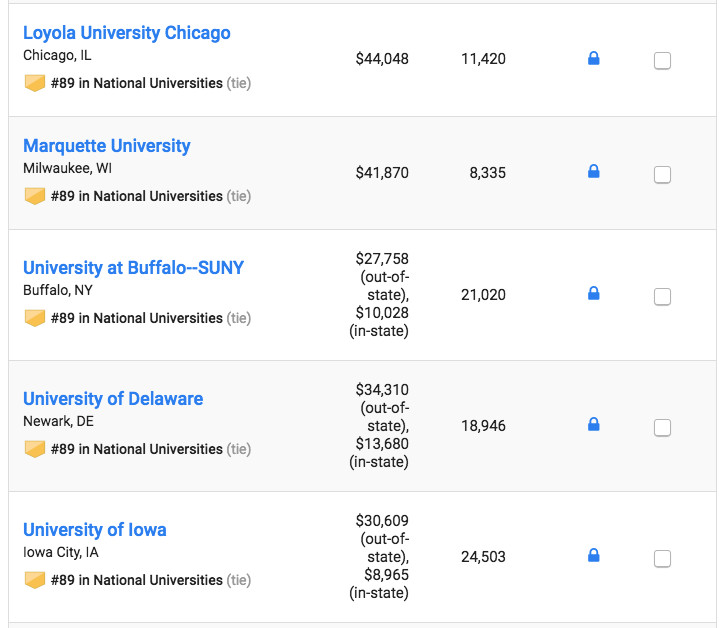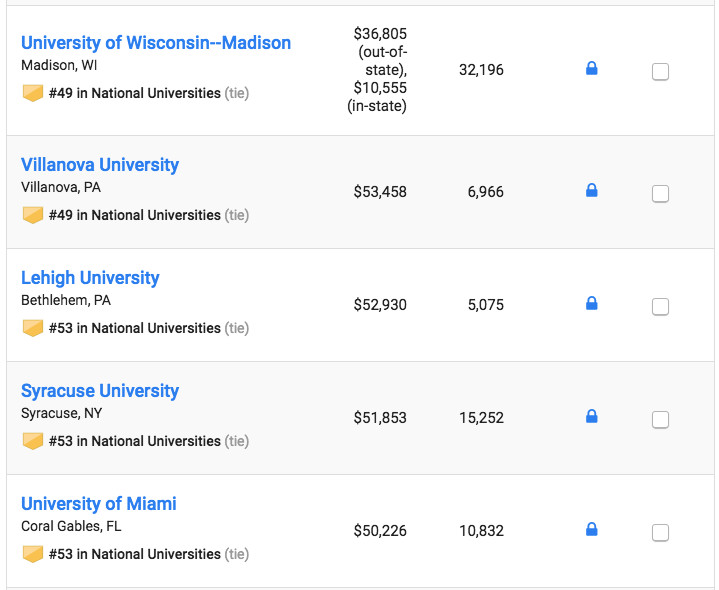2018USNews全美最佳大学(综合性大学及文理学院)排名