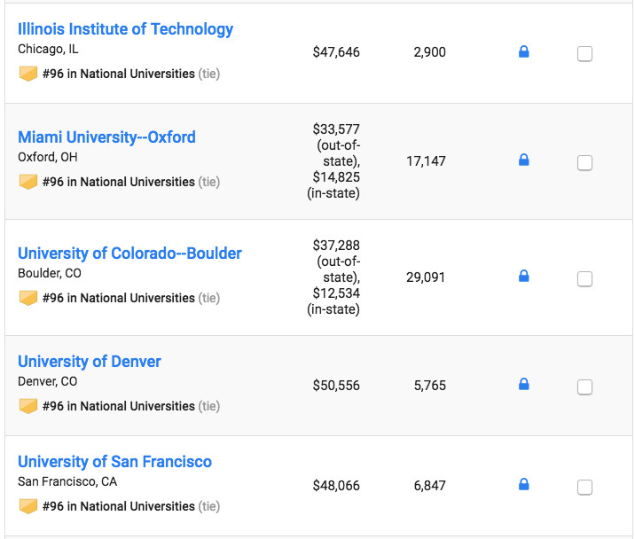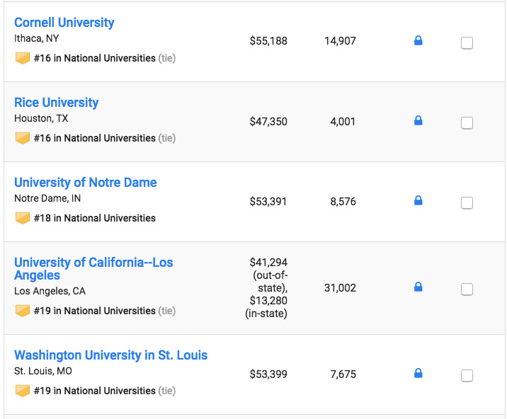 2019USNews全美最佳大学(综合性大学及文理学院)排名
