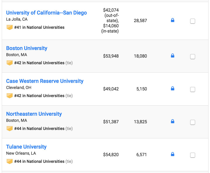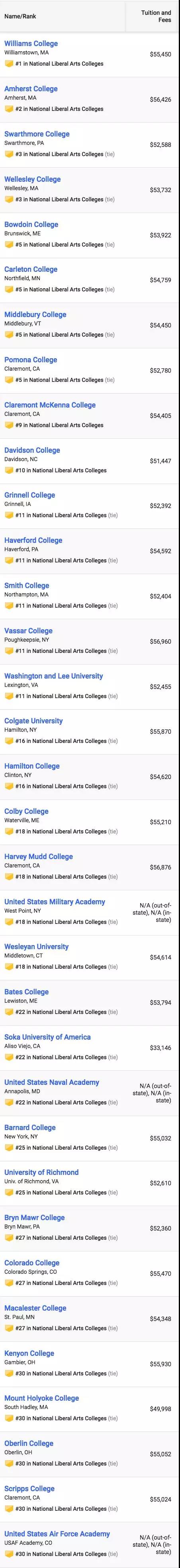 2020USNews全美最佳大学(综合性大学及文理学院)排名